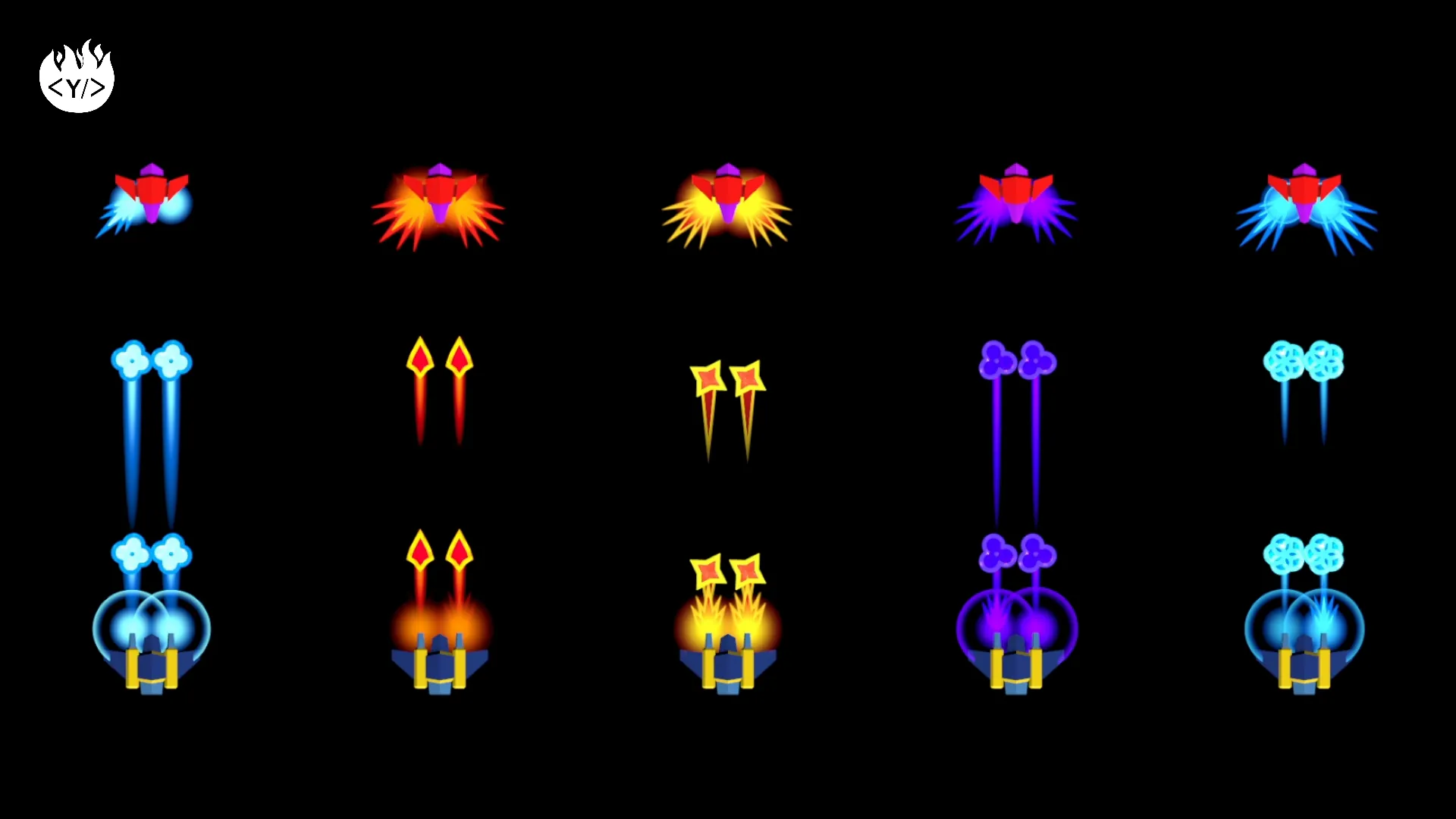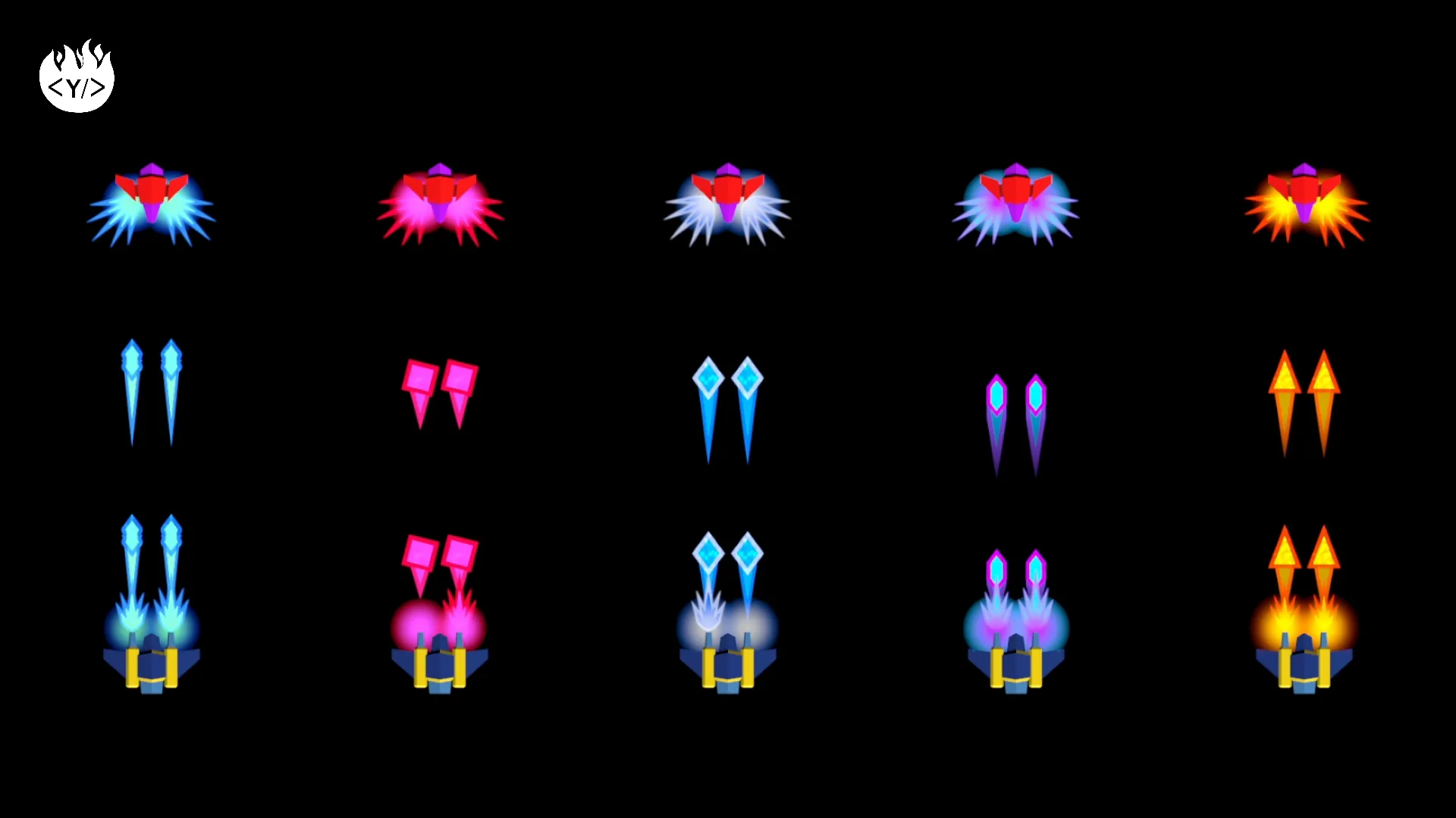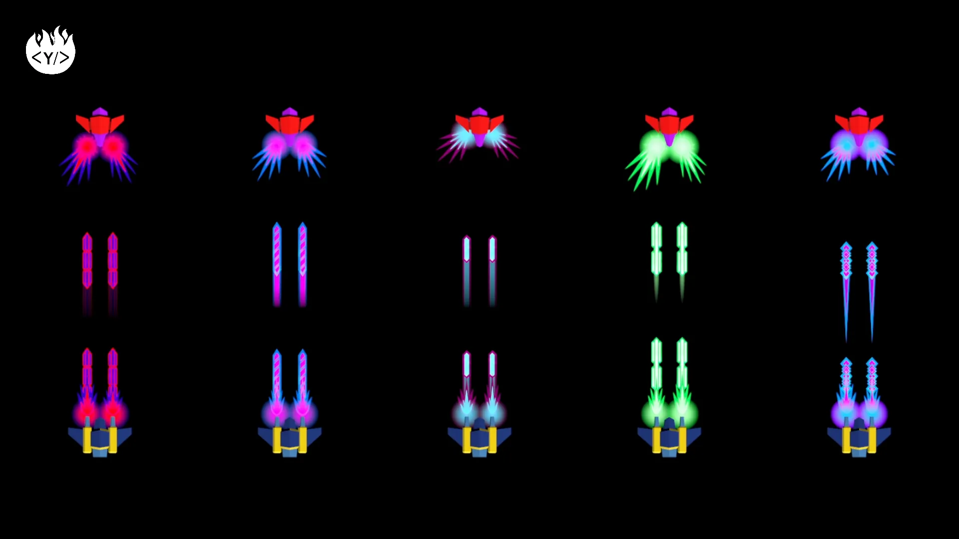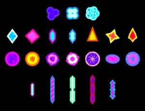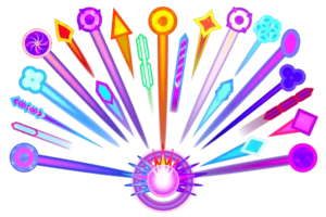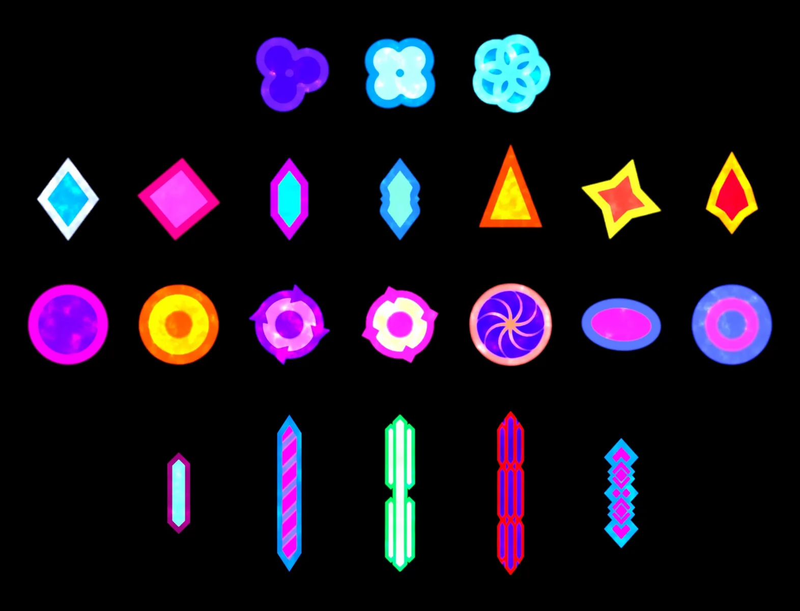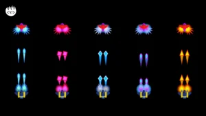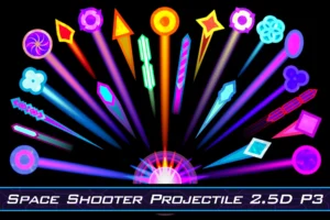 This package includes 22 projectiles: 7 “diamond” projectiles, 7 “sphere” projectiles, 5 laser projectiles and 3 “flower” projectiles.