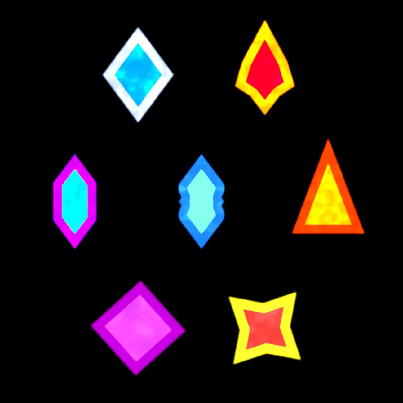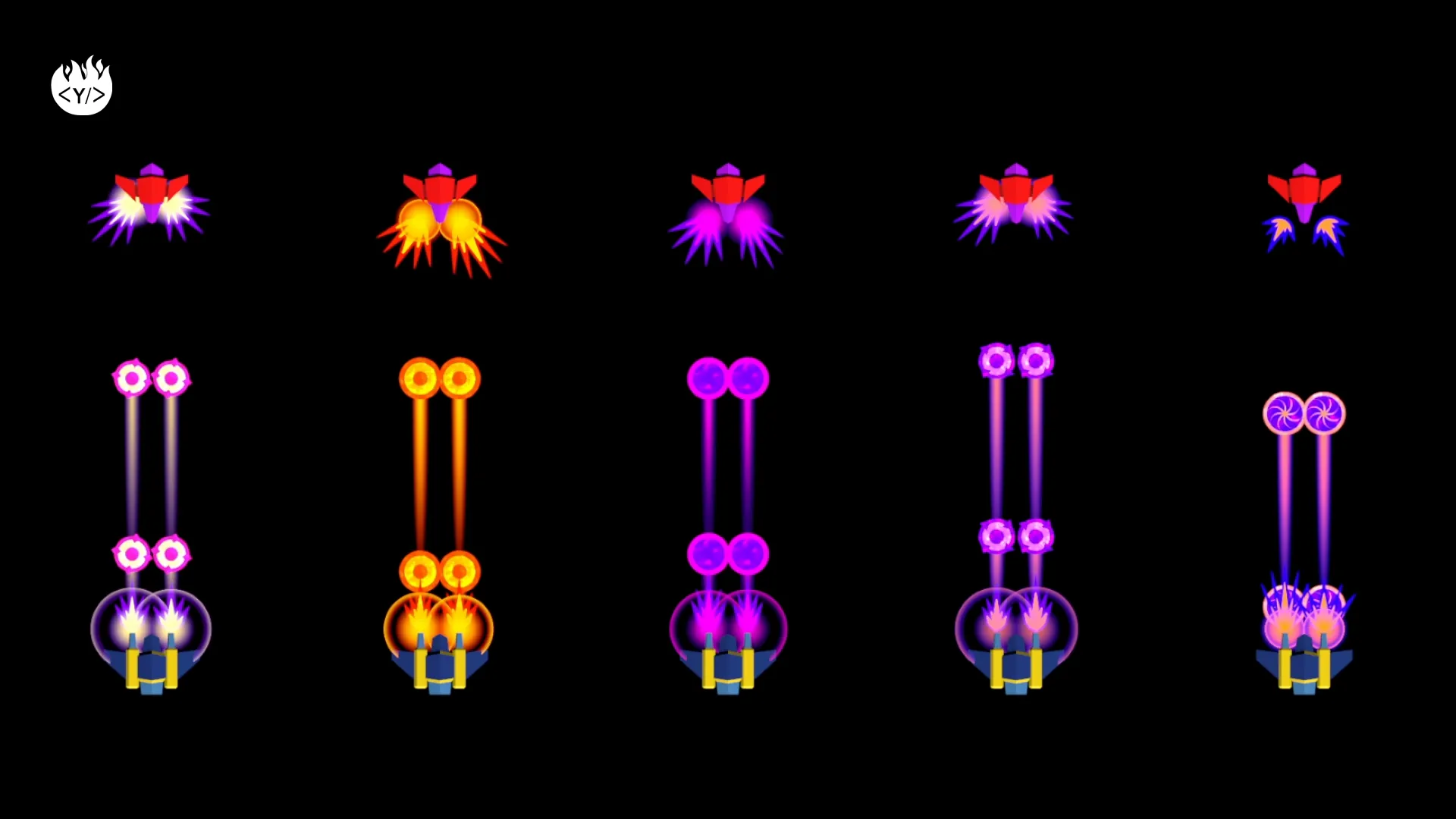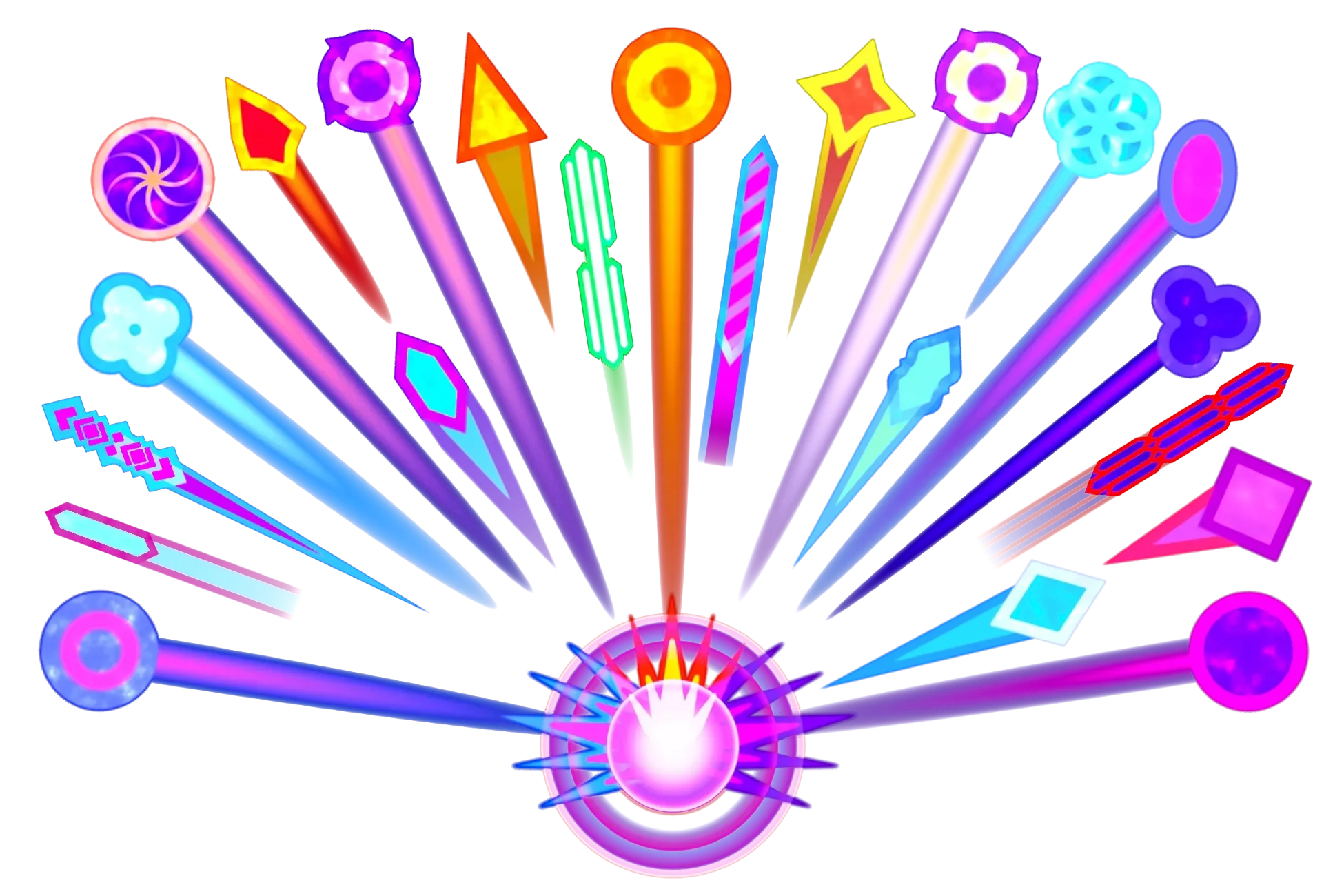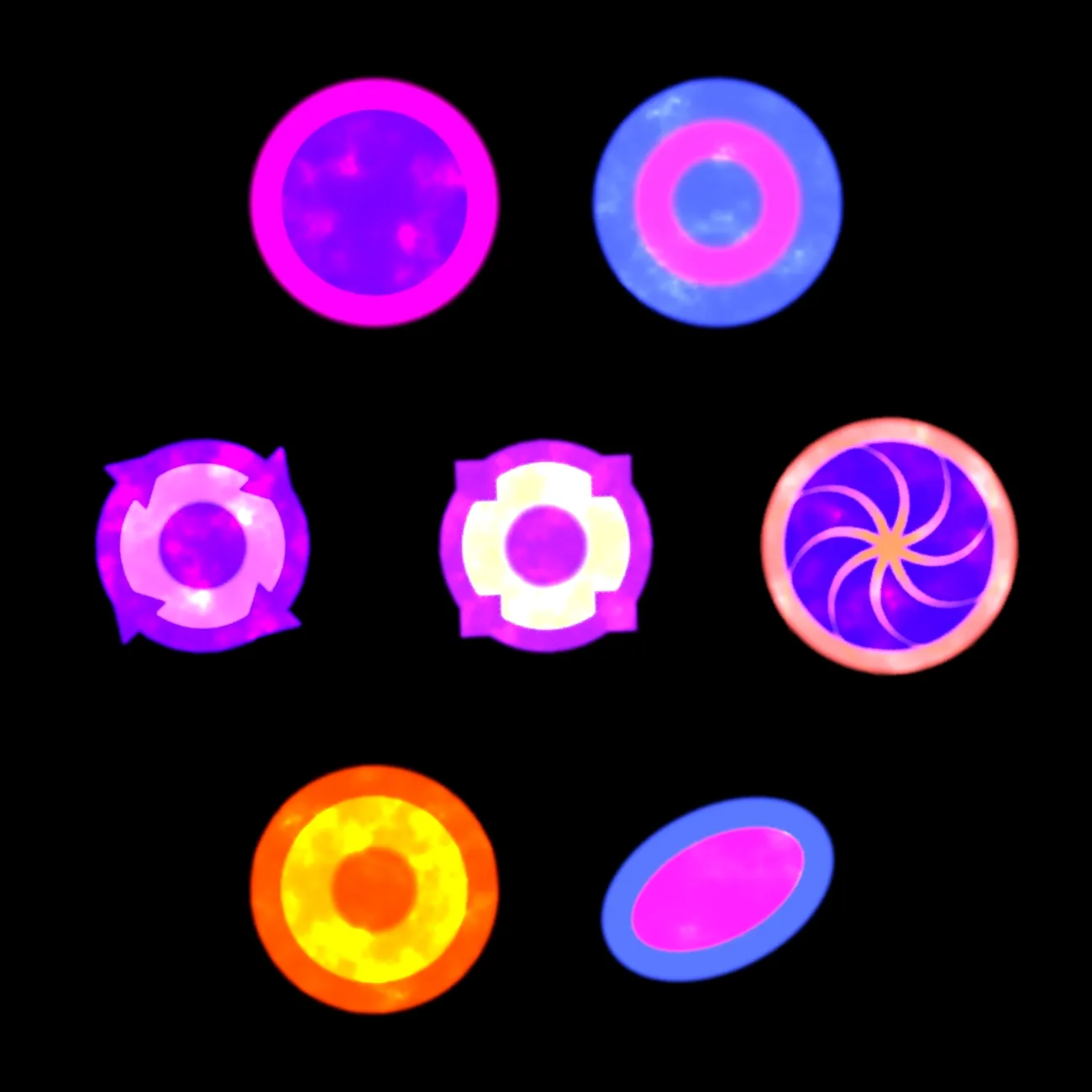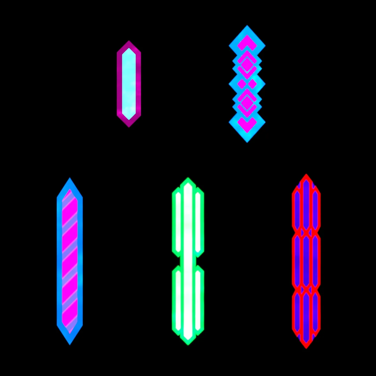 This package includes 22 projectiles: 7 “diamond” projectiles, 7 “sphere” projectiles, 5 laser projectiles and 3 “flower” projectiles.